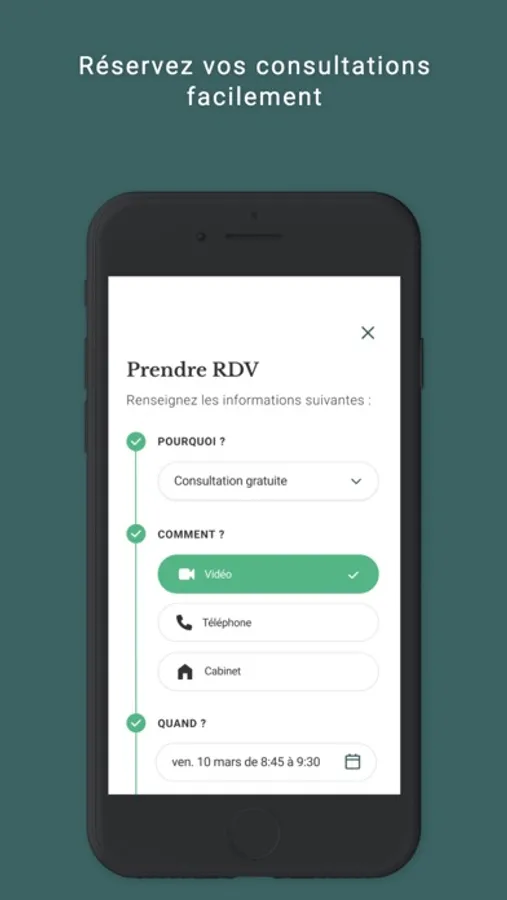 - Prenez RDV pour des consultations en vidéo ou en cabinet