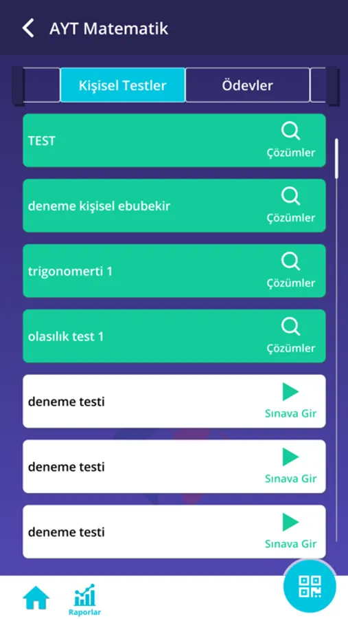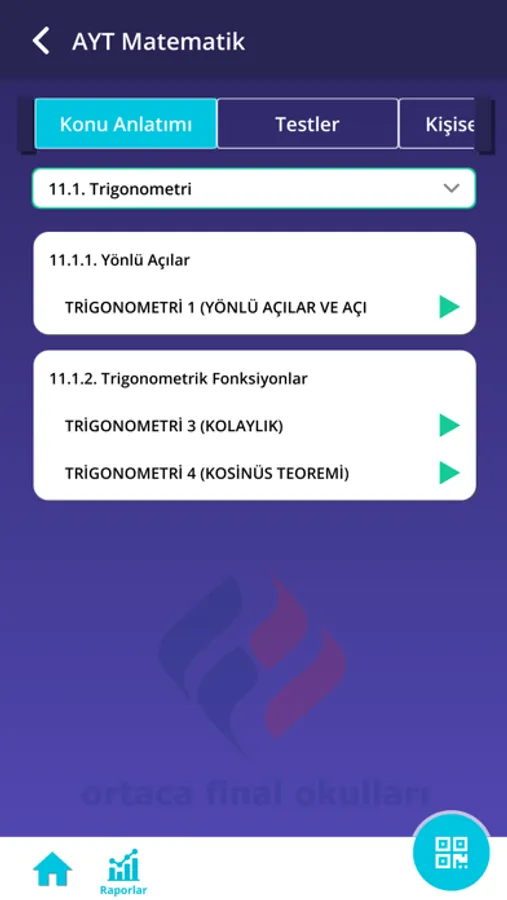 Milli Eğitim Bakanlığı Talim Terbiye Kurulu tarafından belirlenen konu ve kazanımlarla eşleştirilmiş, ders programları ile uyumlu soru havuzumuzdan yararlanarak deneme sınavları ve testler hazırlayabilirsiniz. Sınırsız testler oluşturup video çözüm ve konu anlatımları ile konuları tekrar edip pekiştirebilirsiniz. Özetle ihtiyacınız olan konulardan istediğiniz zorlukta ve miktarda soru çözebilirsiniz.