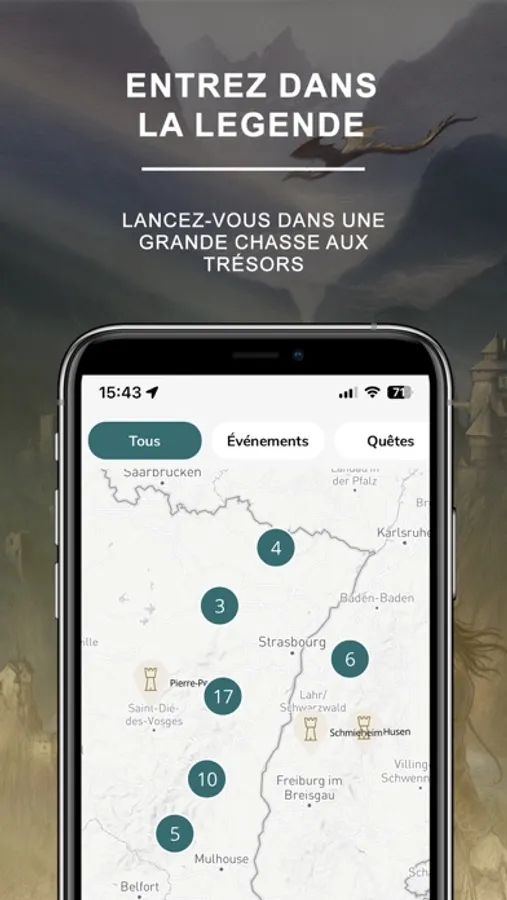 Grâce à l'application mobile, partez à la recherche d'indices dans les châteaux de la plaine du Rhin et débloquez des contenus inédits.