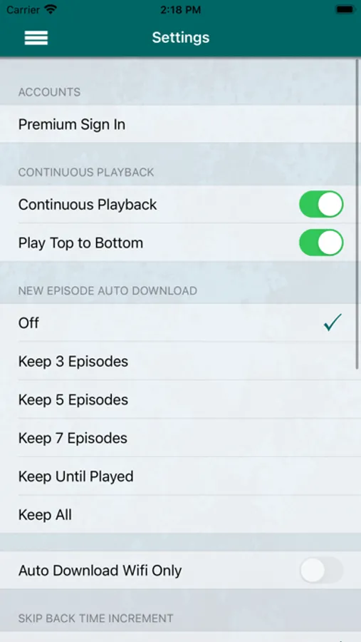 * Playback controls like continuous play, Speed 1x, Repeat Off, and Sleep Timer
