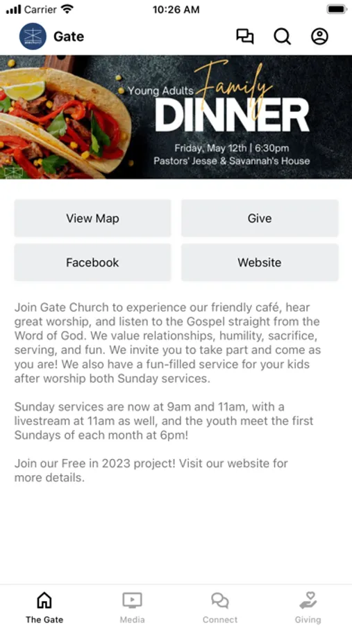 This app will help you stay connected with the day-to-day life of Gate Church. With this app you can: