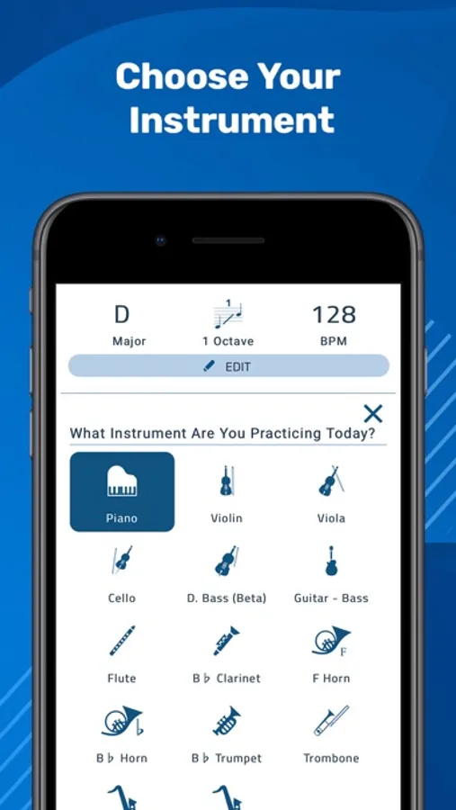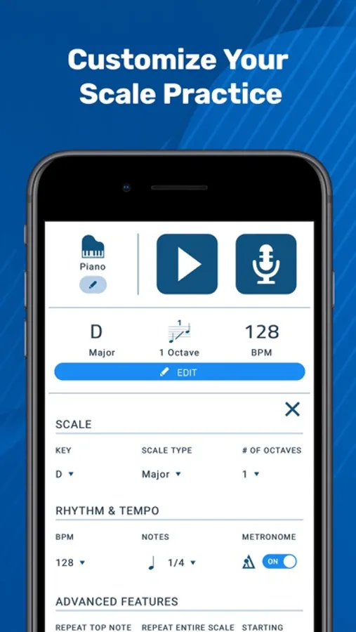 • Customize instrument type, instrument fingering, # of octaves, octave placements, rhythm, BPM & more