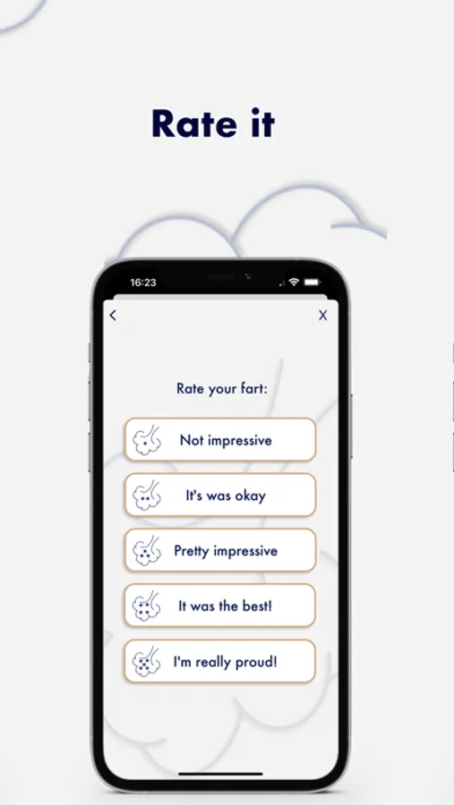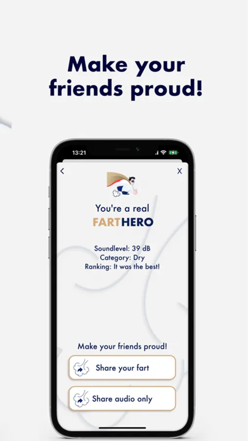 Do you have a fart ready to go? Start recording! It will be carefully evaluated by our advanced fart-analysis system. After that you will review your fart, by using a scientifically proven questionnaire. Finally, all data is processed accurately and can be shared.