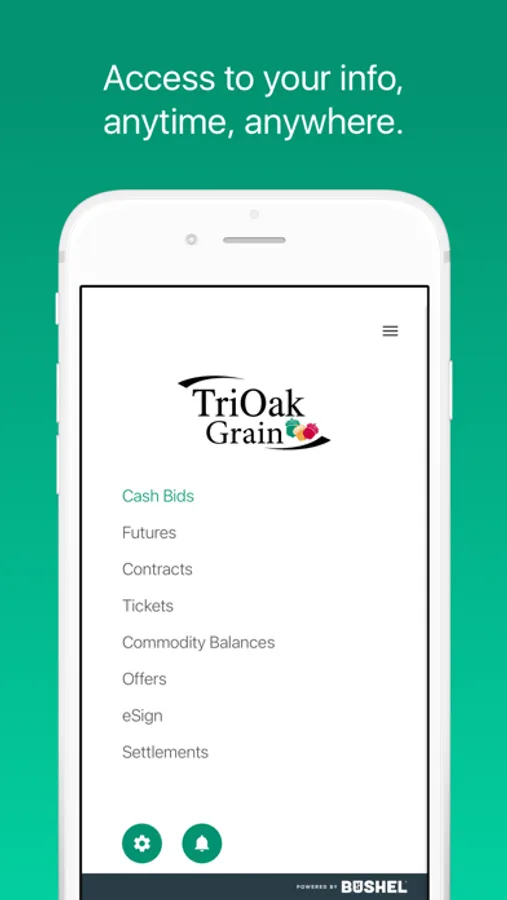 The TriOak Grain app is free, secure, and developed by the industry-leading Bushel platform.