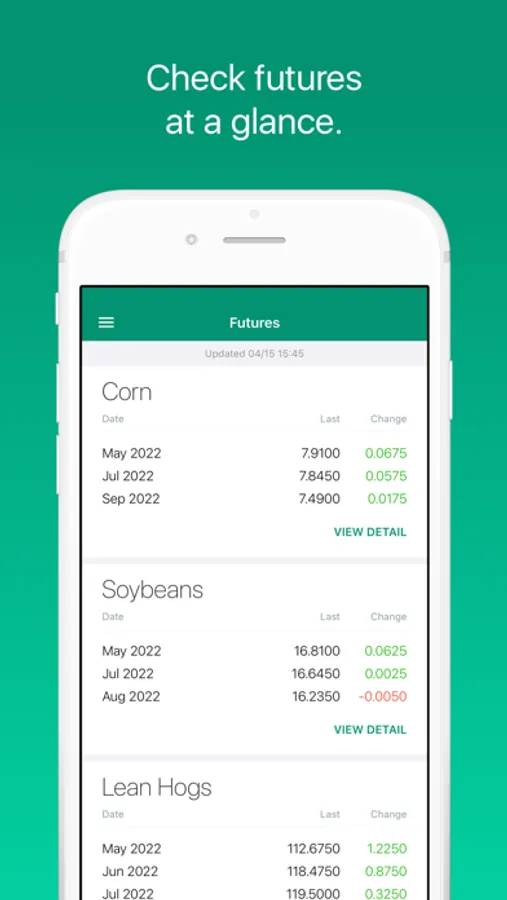Futures: See Grains, Feed, Livestock, and Ethanol futures listed in order of your preference