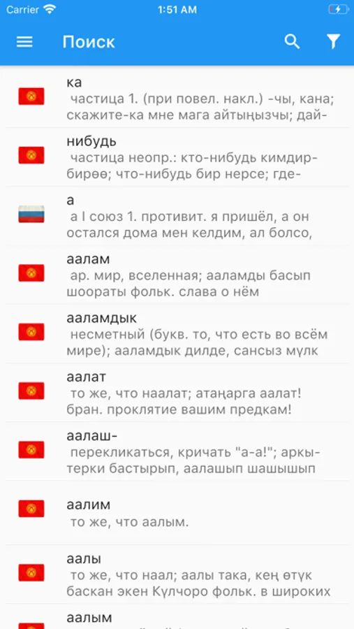 Надоело таскать с собой большие и тяжелые словари? Теперь всё необходимое будет у вас в смартфоне! Киргизско-русский и русско-киргизский оффлайн-словари будут всегда с вами, где бы вы ни были - на учебе, в путешествиях или занимаясь киргизским в домашней обстановке.