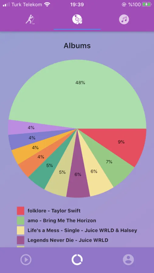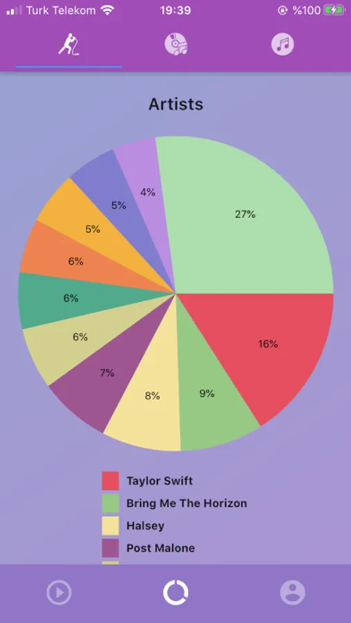 Playify is a Music Player that can show you statistics about the songs and artists you listen. Start listening now and learn about your listening habits!