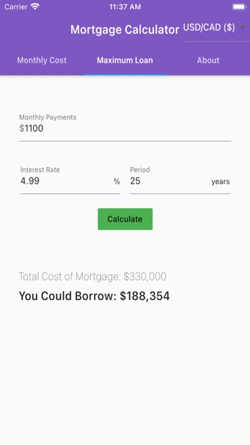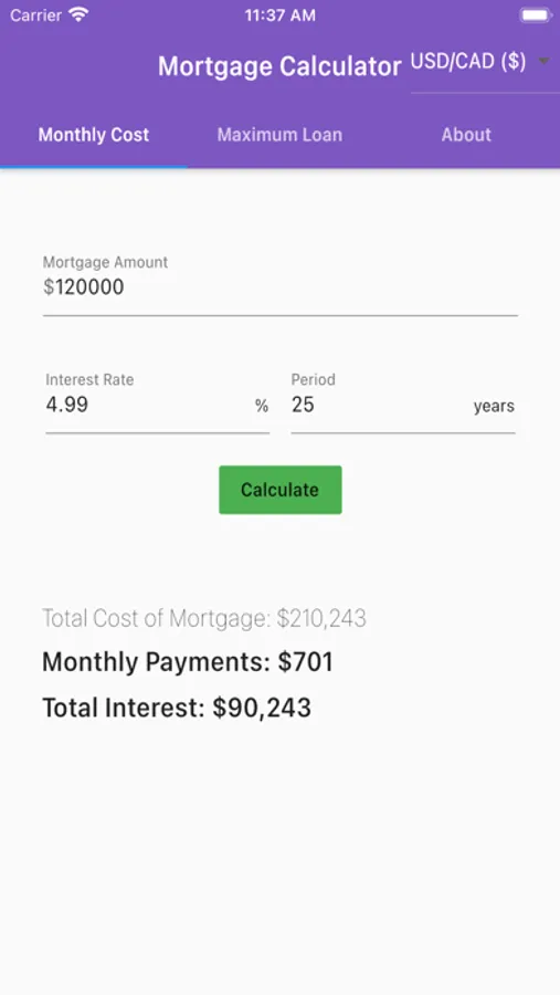 Simply input your mortgage amount, the interest rate, and the amount of years your mortgage is, and the app will quickly calculate all the data you need to fully understand what your expenses will be.