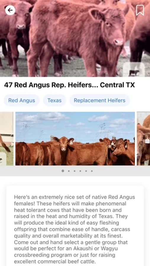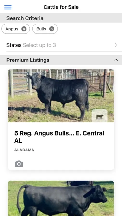 The Cattle Range mobile application offers quick and convenient access into the CattleRange.com listing directory. Search our entire listings database or submit your own listing and media from your mobile device. Listings can be filtered by Cattle Class, Breed, State, or combinations thereof.