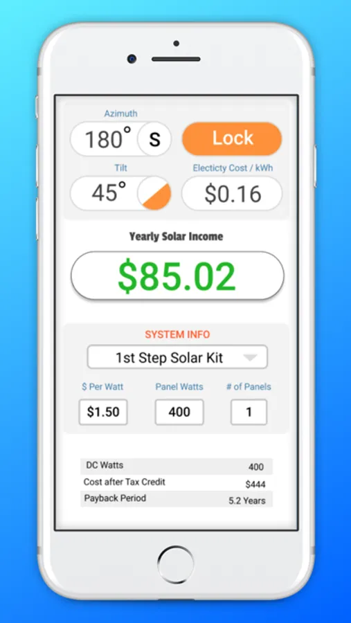 1stStepSolar.com intends to demystify solar. This app does just that. This app makes your smartphone a live, virtual solar panel in your hand. Lay it on your roof or hold it in your roof position to see the annual dollars produced by a panel (or multiple panels). By knowing a panel’s annual dollar value and its initial cost, you may be pleasantly surprised how soon the solar pays for itself.