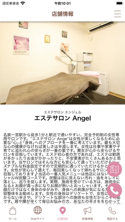 エステサロン Angelの公式アプリが登場。アプリを通して『エステサロン Angel』の新着情報やお得な情報をリアルタイムで受け取ることができます。また、いつでもお手元のスマートフォンから、メニューやご希望のお時間帯のチェック・ご予約などが可能です。アプリをインストールしていただくことにより『エステサロン Angel』を、より便利に身近にご利用していただけます。