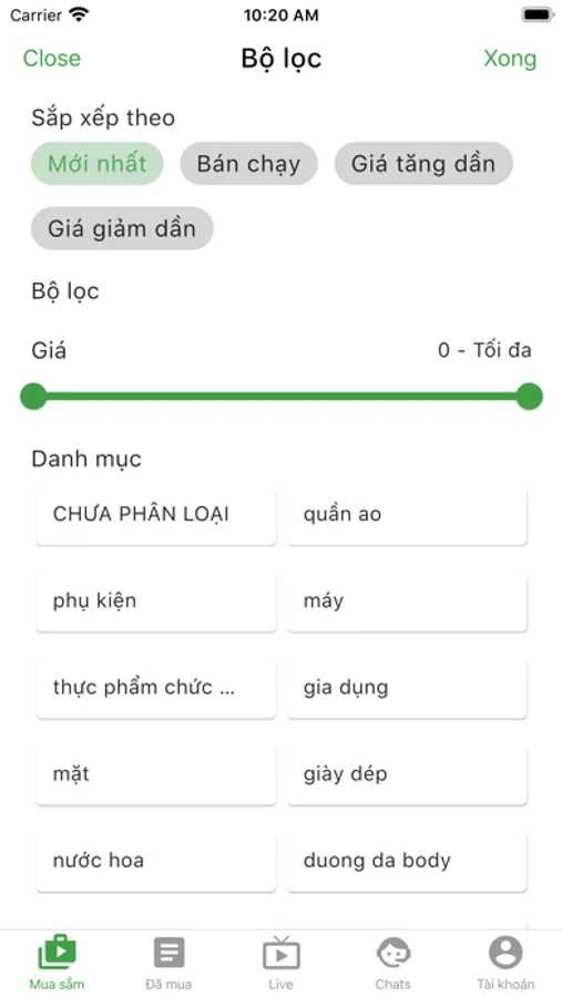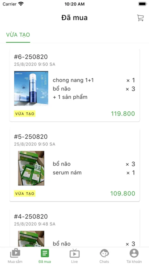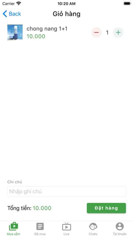 - Đặt hàng: bạn có thể đặt hàng với danh mục sản phẩm của shop hoặc những mặt hàng bán trong lần livestream ma bạn chưa mua kịp khi livestream đang phát.