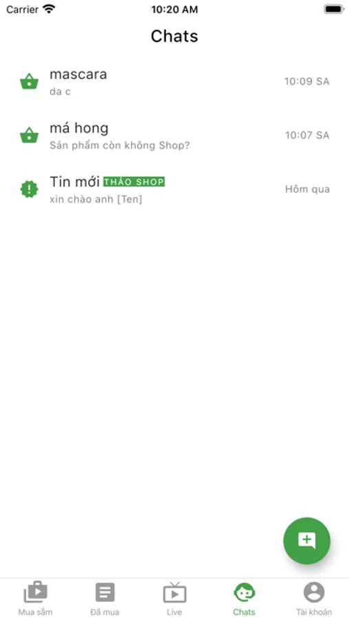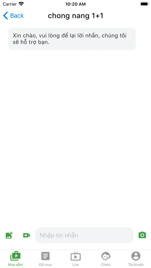 - Chat hỗ trợ bằng tiện ích chat trực tuyến với shop, có thể gửi cả ảnh, video.