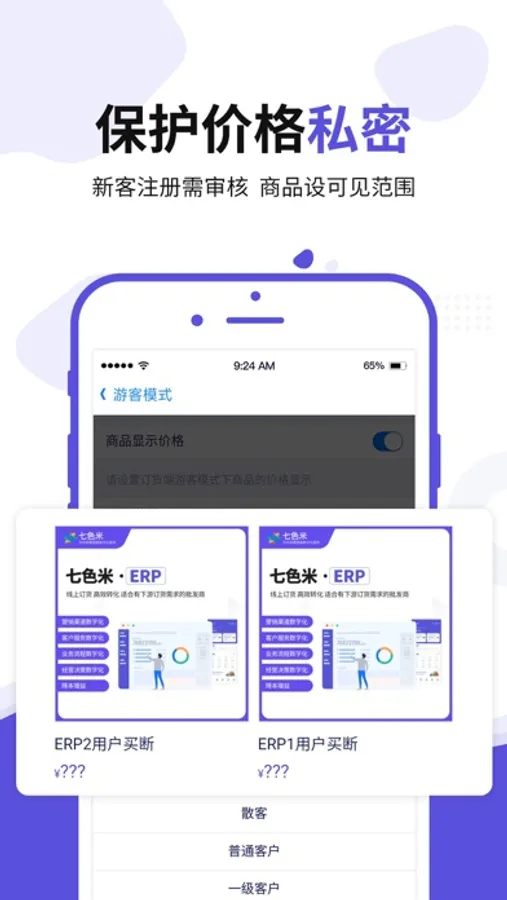 七色米ERP是一款专为批发商打造的管理系统,包含进销存+订货商城+营销工具,支持电脑、网页、手机等多端操作,帮助批发商实现数字化,促进业务转型!