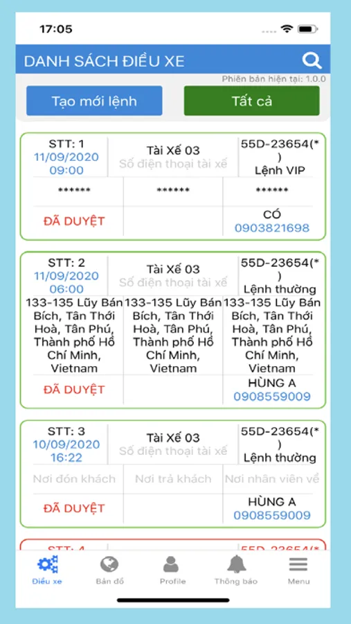 1. Nhân viên được cấp quyền có thể tự đặt xe