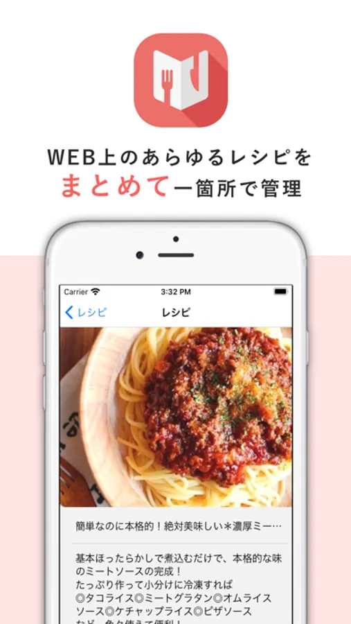 Ricetta(リチェッタ)は、WEB上のあらゆるレシピをまとめて一箇所で管理出来るレシピ管理アプリです。