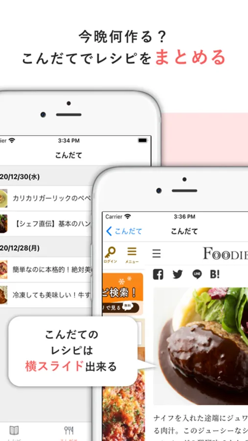 ・複数のレシピをスワイプ操作で行ったり来たり出来るこんだて機能