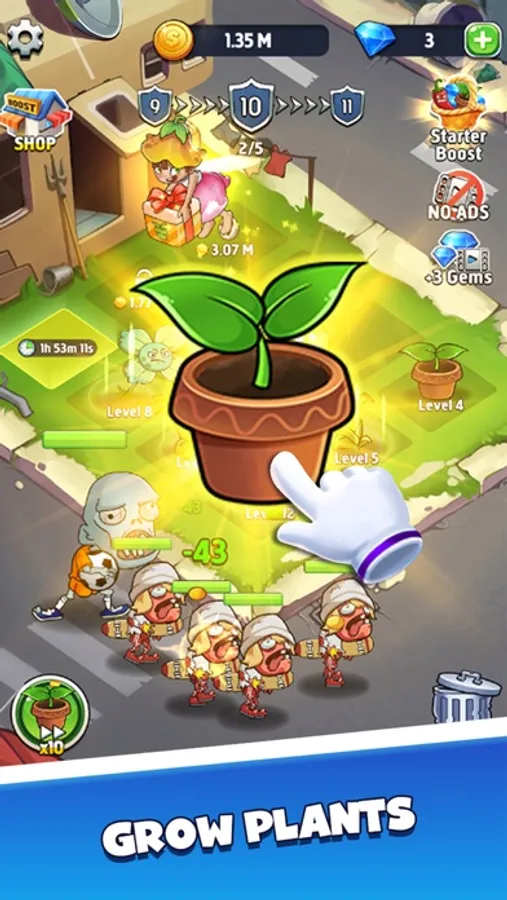 • Use Super Boost to increase the power and attack speed of plants
