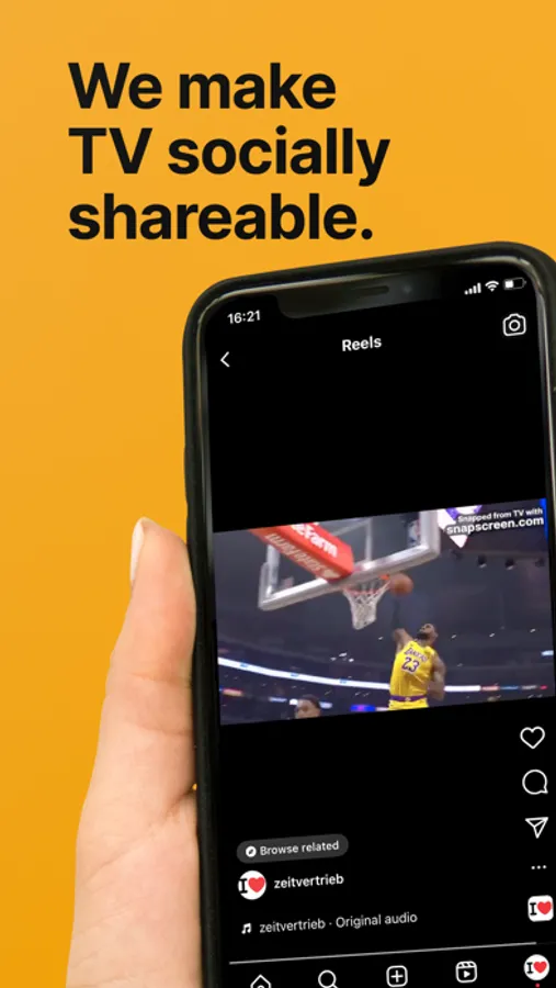 Snap the TV screen, we recognize the program and send the last few minutes in HD to your phone for sharing with your friends and followers.