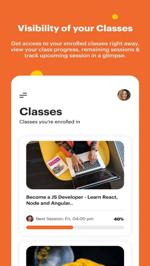 - Check next live session timings and join right from the app