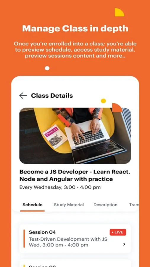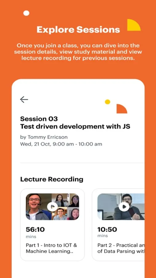 - Easily access the study material for each session. Watch lecture recordings and other video content uploaded by instructors