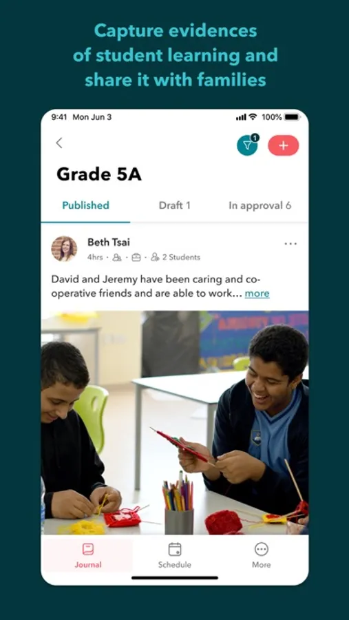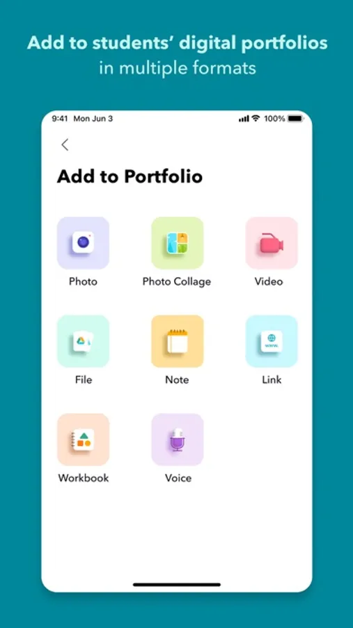 * Capture evidences of student learning through photos, videos, audio notes and more