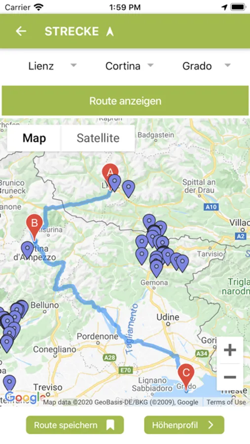 The app offers insights into unknown places and suggestions for local active programs and services. You can save the highlights of your bike route on the Wishlist and simply access them for your next journey. Share your best experience of your bike route with your friends on social media and refresh places between Lienz and Venice that need to be put into the spotlight.