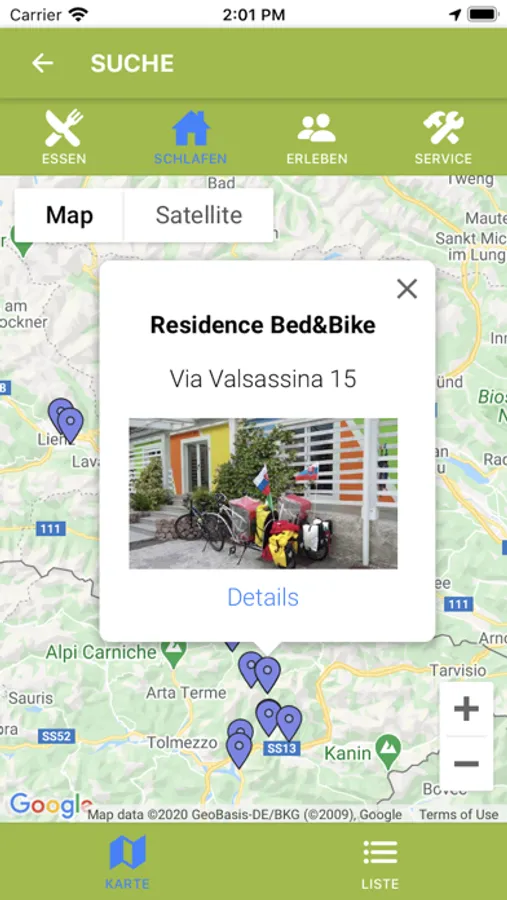 PARKADE is a central app for cyclists who discover the regions between the Lienzer Dolomites and Venice by bike. The app offers prompt driving directions as well as suggestions regarding gastronomy, activities, and sights in the respective area.