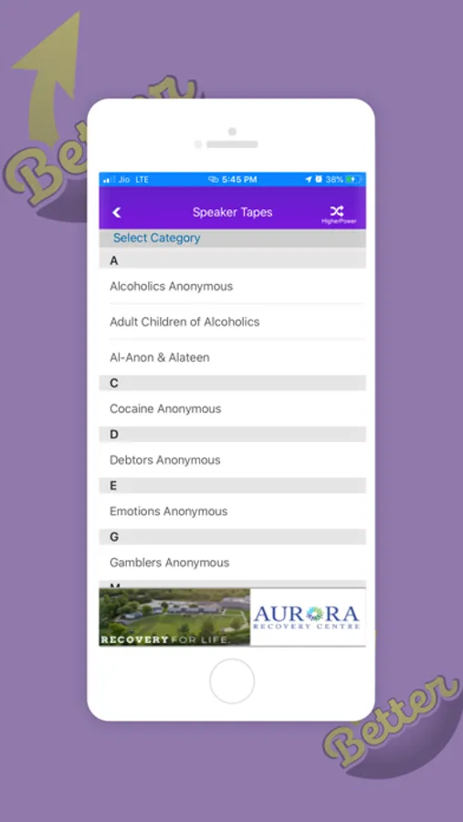 - Speaker Tapes – over 15,000 speaker tapes, tap on Higher Power for autoplay what you need to hear at that moment
