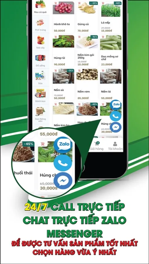 Khách hàng có thể Chat, gọi điện trực tiếp tới cửa hàng, chuỗi siêu thị Phúc Lợi để