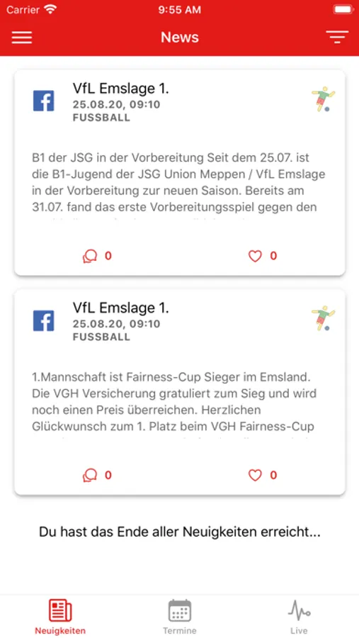 Durch die Einbindung sozialer Netzwerke kannst du das Geschehen im Verein brandaktuell mitverfolgen.