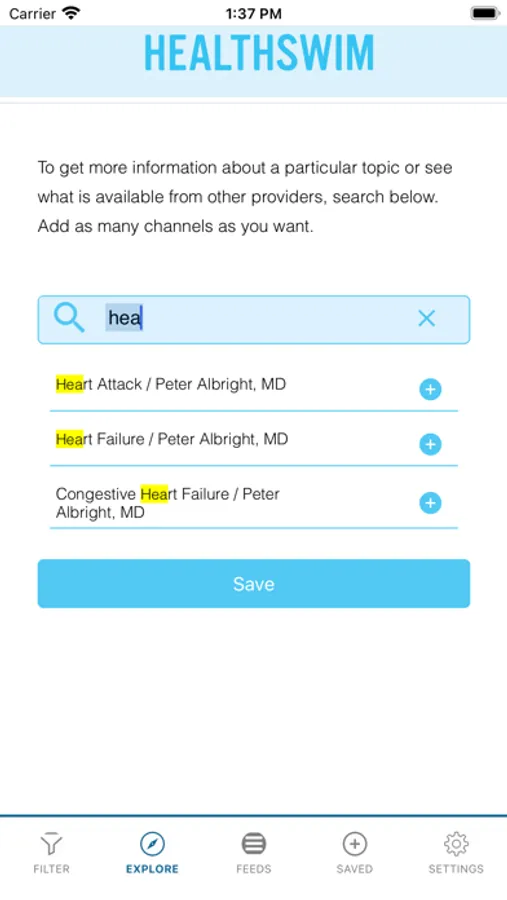 Healthswim is your trusted partner in searching the internet for credible medical information. Healthswim brings together information seekers, like yourself and the licensed healthcare providers. When you search for a medical condition on the mobile app, every result you get has been picked by a healthcare provider, preferably your own.