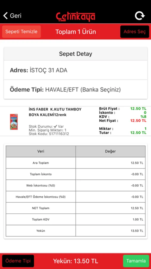 Çetinkaya Kırtasiye B2B Sisteminin Mobil Uygulaması.