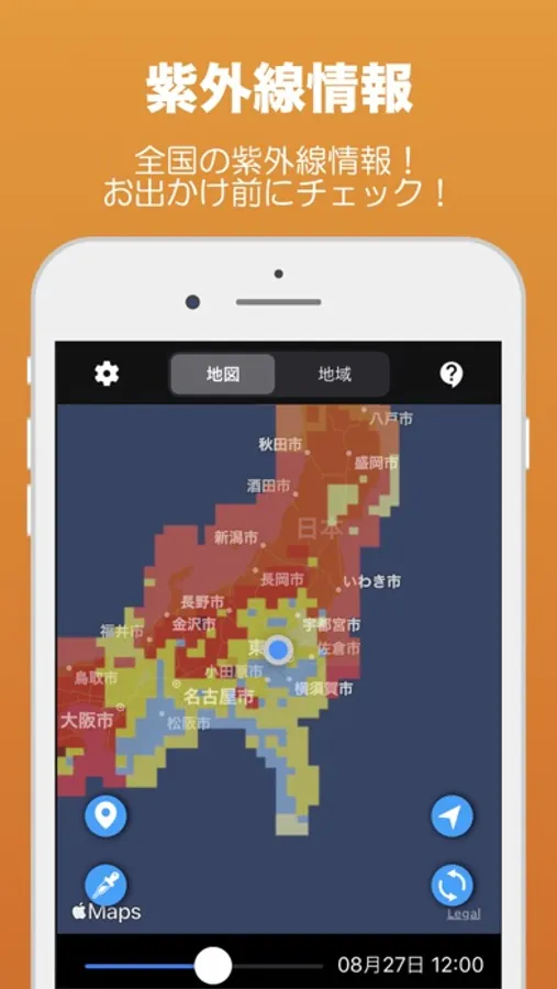 UVインデックスの毎正時の予測分布図及び解析分布図です。