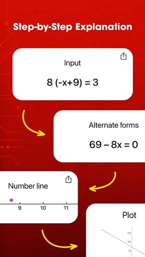 - View the results and the mathematic steps to solve the problem. For a better understanding, we provide visual representations as well for certain math problems such as equations and calculus.