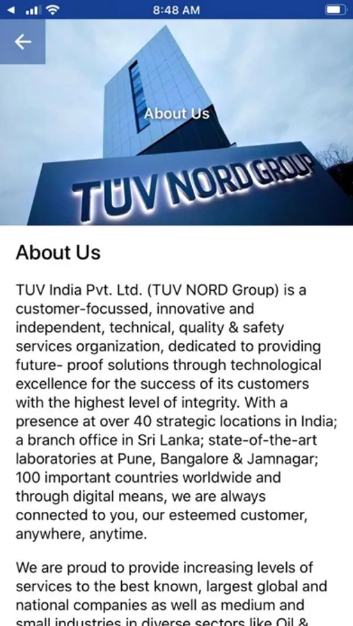 The app is also apprising the users of the diverse service portfolio of TUV India along with the latest developments related to our company.
