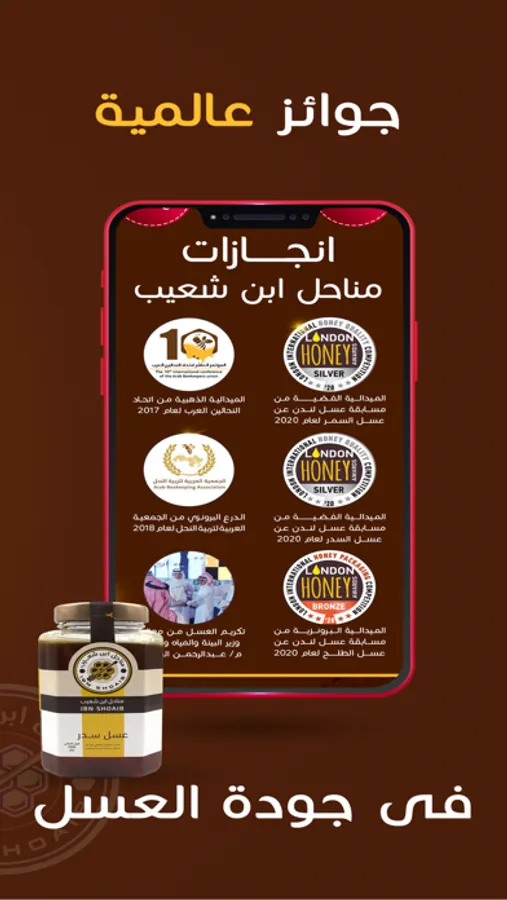 مناحل عبدالله شعيب القرني الحاصله على 17 كأس وميدالية في جودة العسل كان أخرها في دولة تونس على مستوى الوطن العربي المركز الأول والكأس الذهبي نقدم لكم منتجات النحل من عسل وشمع العسل بجودة عالية ليرضي ذائقتكم