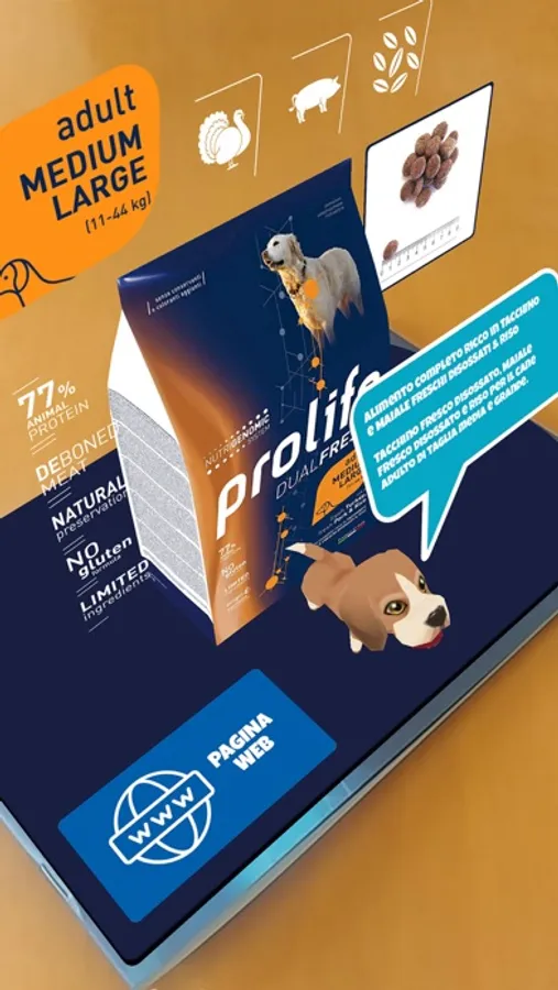 Punta la fotocamera verso il catalogo Prolife e scopri il mondo virtuale Prolife in compagnia dei nostri simpatici amici pets!