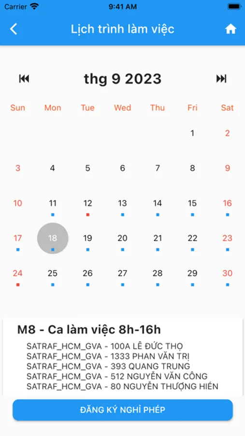 - Người dùng có thể xem được danh sách các siêu thị đi viếng thăm khi xem trong tính năng lịch làm việc.