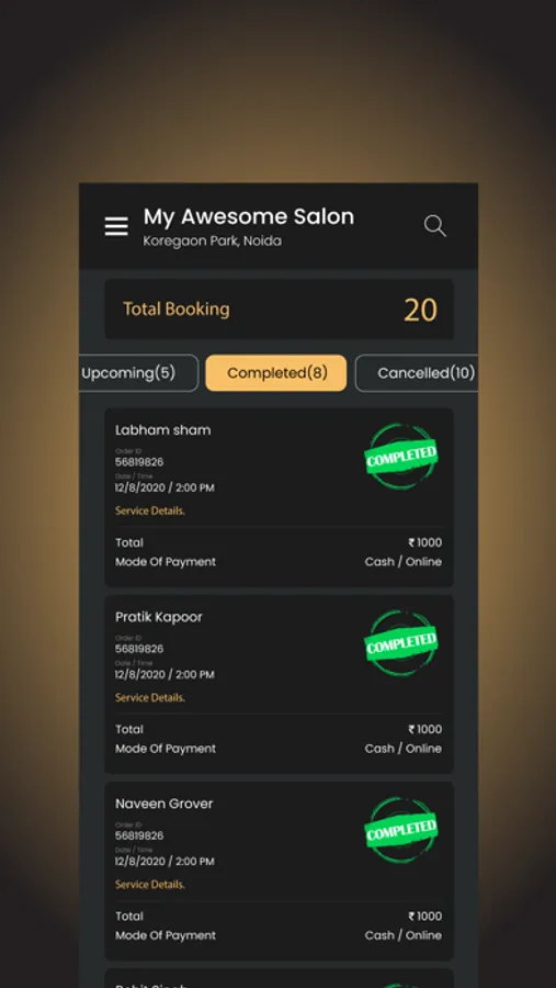 2. A comprehensive dashboard that lists all your appointments. Get details of your completed and