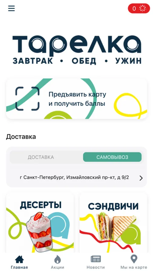 Перед вами мобильное приложение петербургской сети столовых другого формата «Тарелка». Сеть «Тарелка» создана для тех, кто ценит своё свободное время и любит полезные и вкусные блюда на завтрак, обед и ужин!