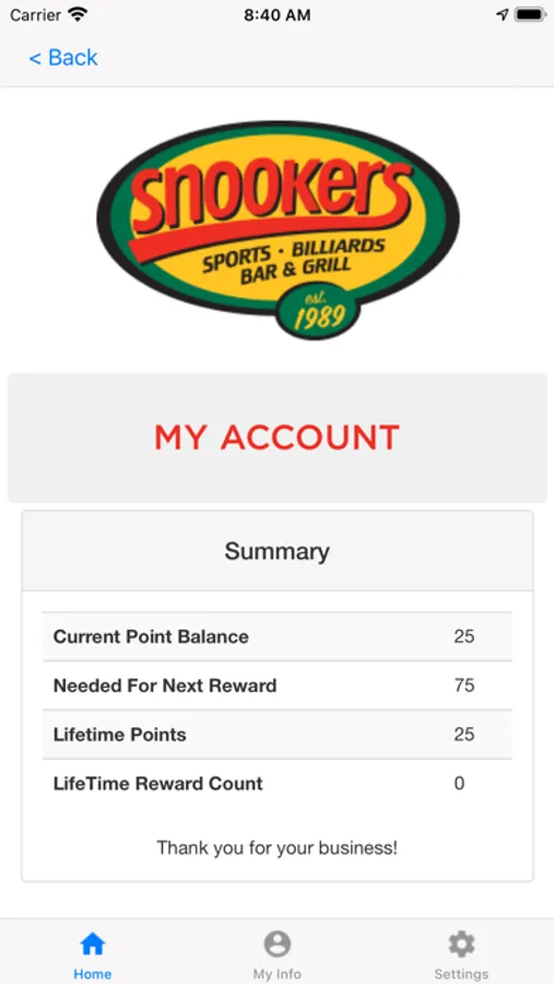 The Snookers Loyalty mobile app delivers offers and loyalty information to on-the-go customers, giving quick access to exclusive deals, enrollment options, loyalty point balance and rewards lookup, loyalty program information, and information about our business-