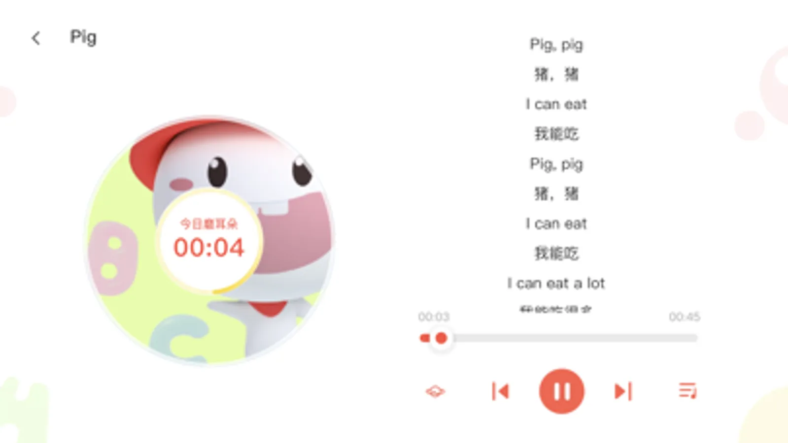 以学习兴趣为前提,过程结合密集的练习频率、系统学习的课程体系、丰富的语言学习资源,以输出、检测和鼓励为结尾,用科学合理的教学逻辑提供给孩子和家长一款优质的启蒙英语教育产品。