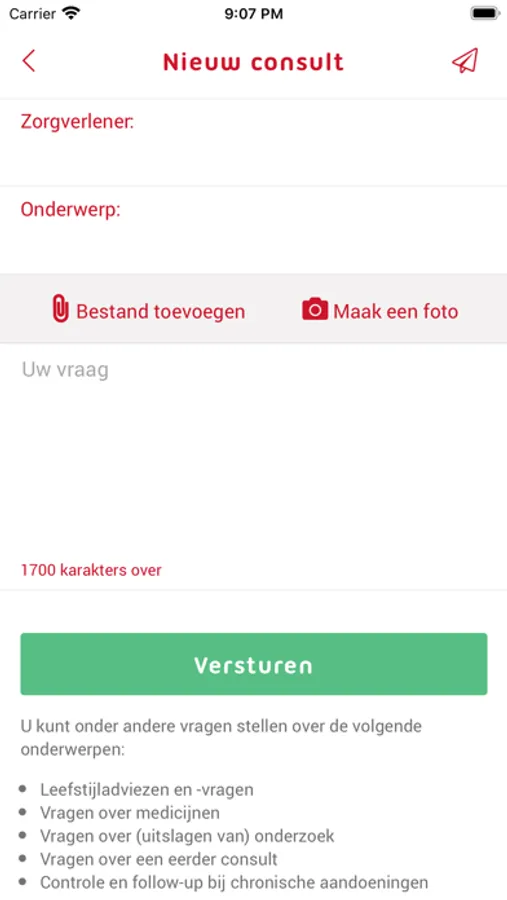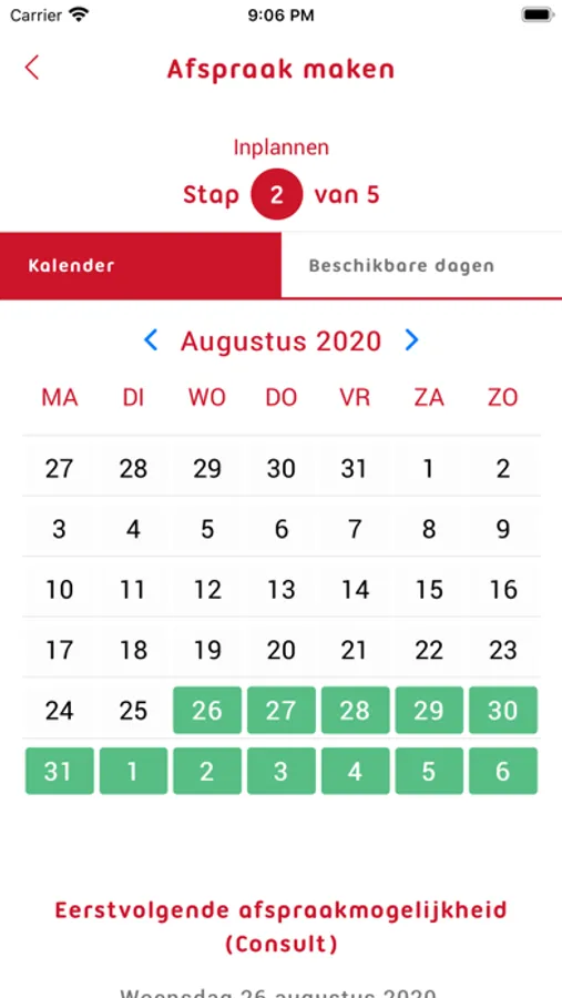 • Bekijk de lege plekken in de agenda van uw arts en boek een afspraak op het moment dat het u uitkomt. U moet tevens de reden van uw afspraak vermelden.