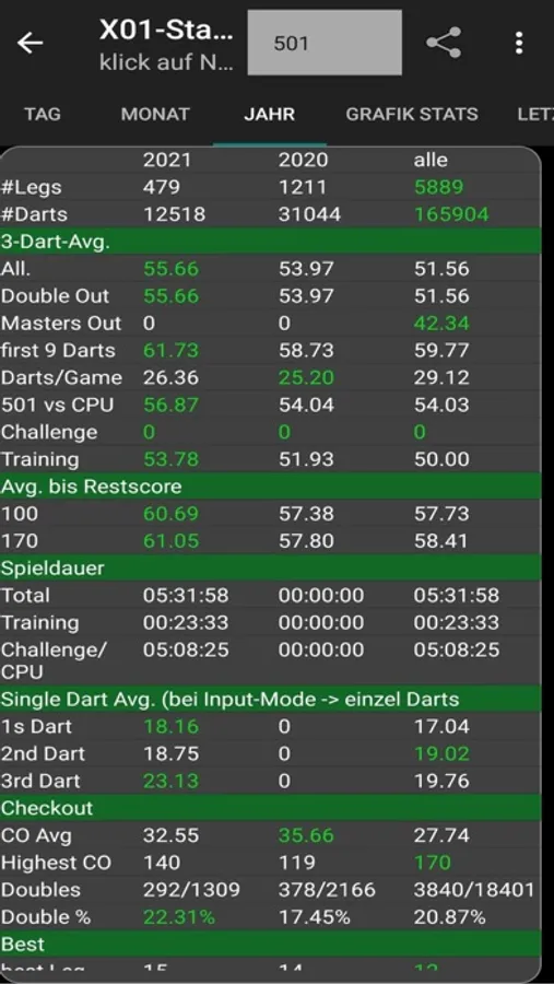 * Profiles: use different Trainingsprofiles for different darts or setups and compare them