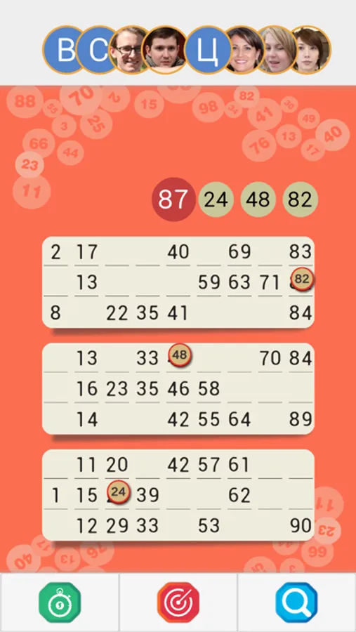Online Loto is especially fun to play with friends. In order to play with your friends, you need to enter the game through one of the available methods. Currently available Facebook and Vkontakte. Logging into the game using these platforms also ensures that your game progress is preserved even if you change your phone or lose it.