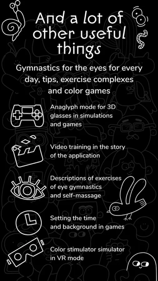 We are looking forward to feedback: write about how you use the application, share results, ideas and impressions. Tell us what you would like to change and what you want to add. This way we can improve faster and delight your eyes with new exercises more often. This way we can improve faster and more often provide new exercises for your eyes.