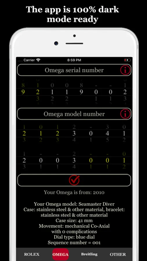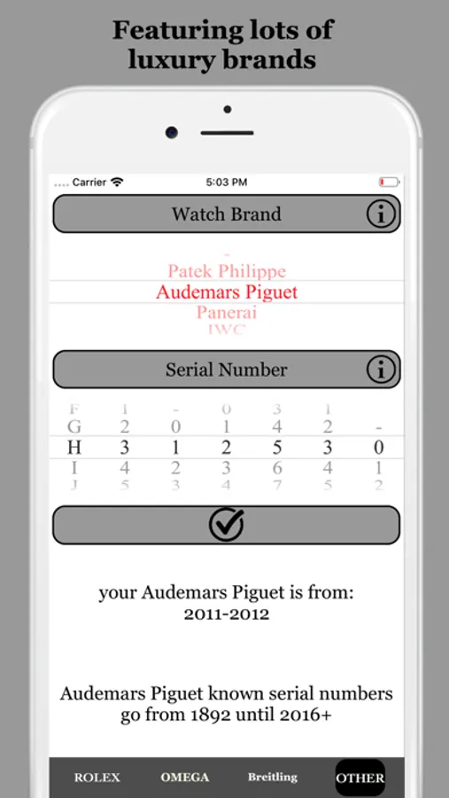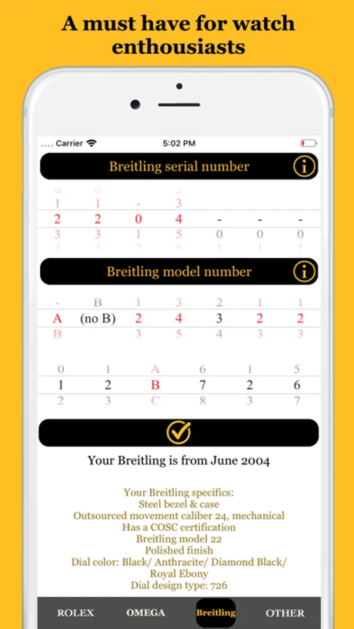 Look up the age, model and specifics of your Rolex, Omega or Breitling wristwatch, and production dates on lots of other high-end brands!