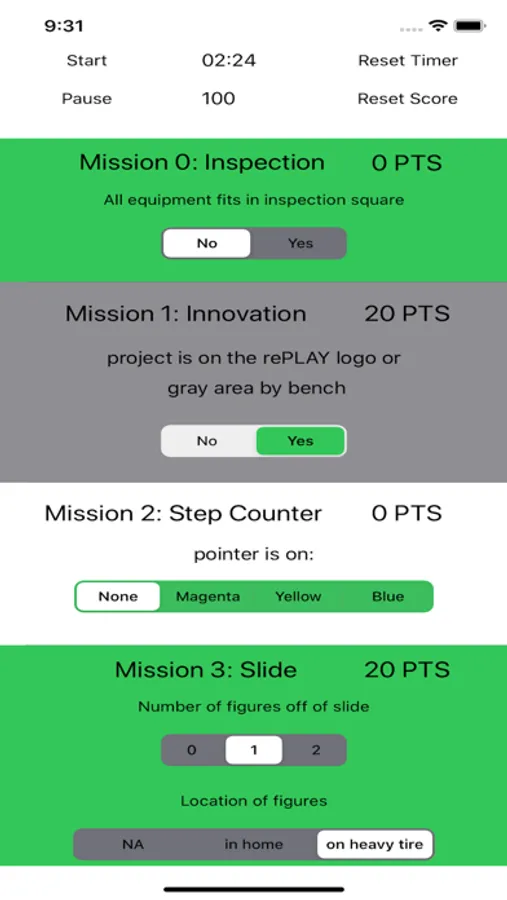 This is a First Lego League scoring app to allow for easy scoring during practice and competitions. Designed for the 2020-21 season, RePLAY, this app will help your team improve and prepare for the competition. This easy-to-use app allows for quick and accurate scoring of a practice round. Clicking on the pictures of each mission allows you to view the rules of that mission, straight from the FLL rule sheet.