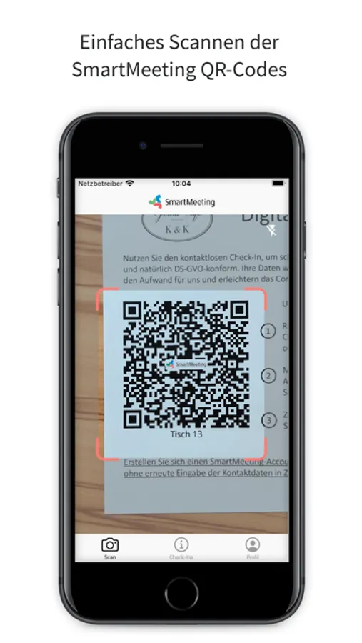 Führen Sie nahezu automatisch ein persönliches Kontaktbuch: Scannen Sie die SmartMeeting QR-Codes der Personen, mit denen Sie sich treffen und erfassen Sie andere Kontakte manuell.